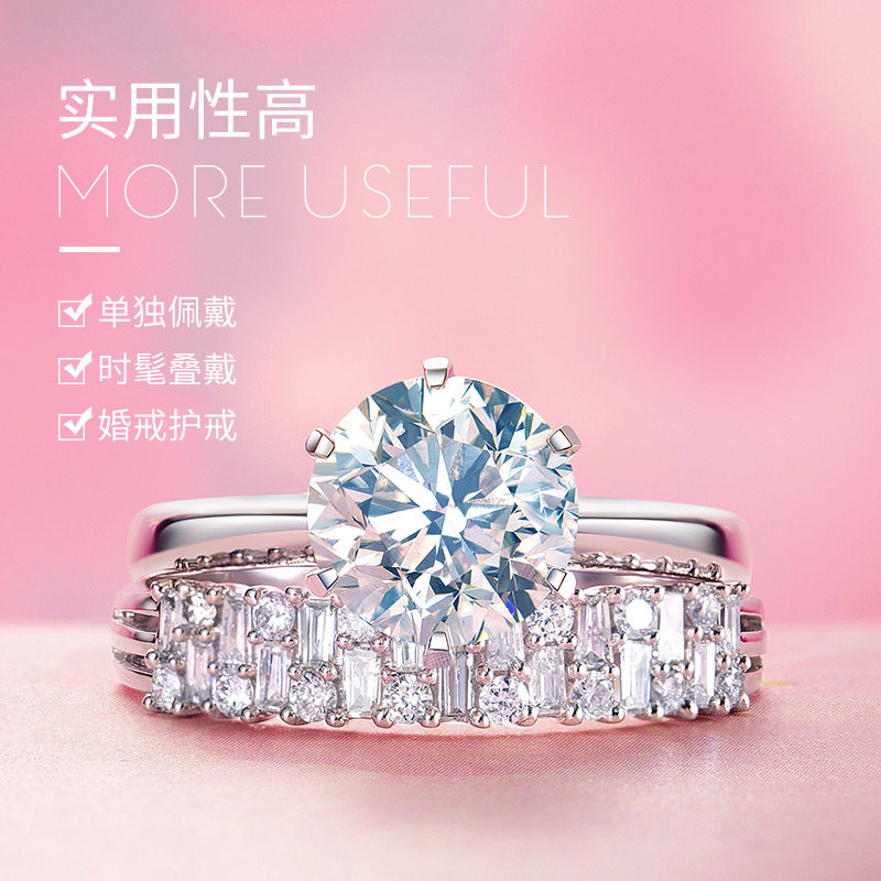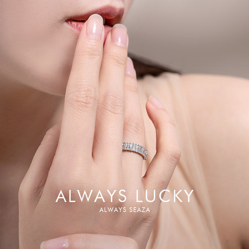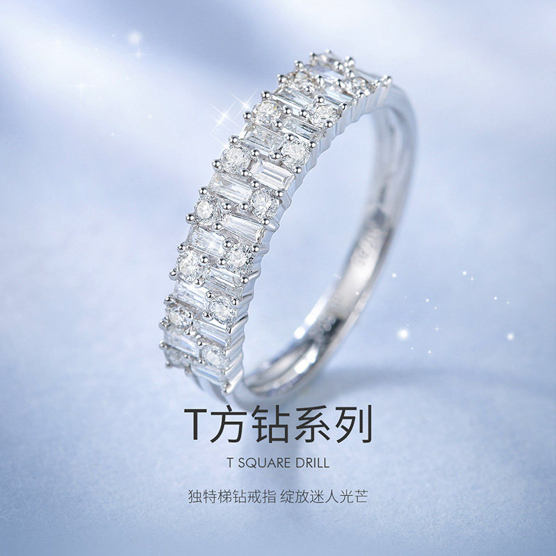 Hi diamond white 18K gold diamond ring women's ladder square set with diamonds Exquisite diamond ring women's fashion fashion jewelry hand jewelry