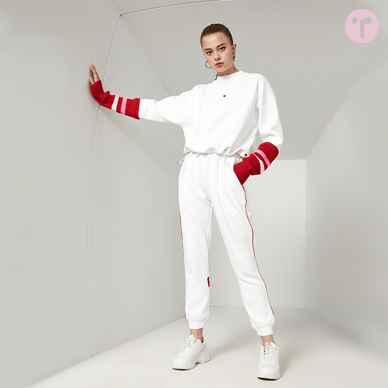 TIFFAFit TIFFA Fit red and white contrast retro school uniform sports casual cropped pants