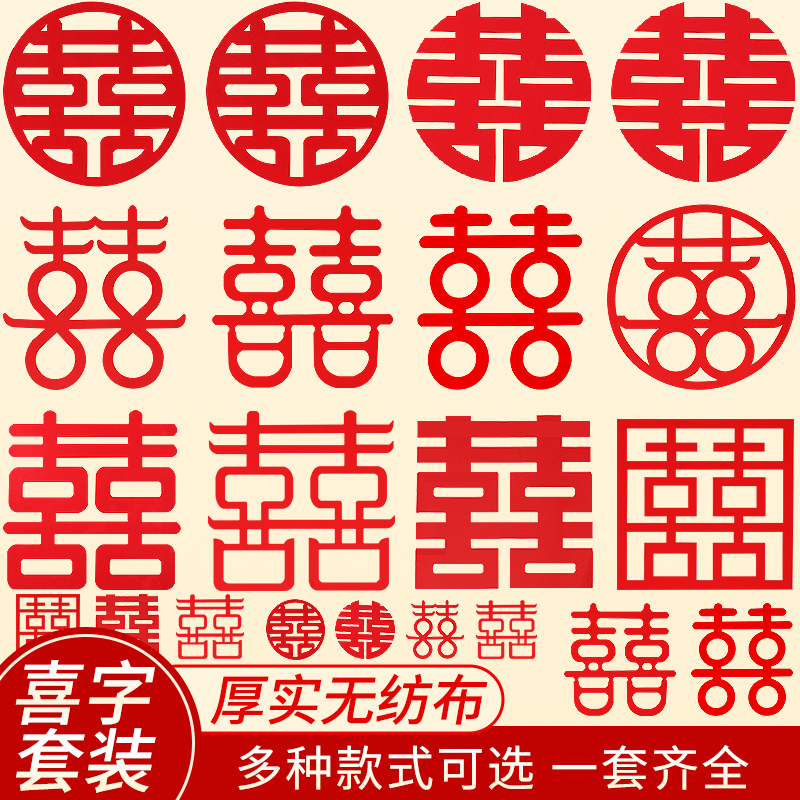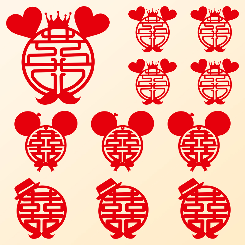 Reunion Hi (non-woven fabric) Reunion Hi (flocked cloth) Zhengyuan Xi (non-woven fabric) Zhengyuan Xi (flocked cloth) Cursive Xi (non-woven) Fang xi (non-woven fabric) Palace hi (non-woven fabric) Bazi hi (non-woven) Han Seal Xi (non-woven) Reunion Q version hi (non-woven fabric) Laughing version hi (non-woven fabric) Zhengge xi (non-woven fabric) Cartoon Hi (non-woven) Princess Mickey (non-woven) Princess Mickey Happy Woman (non-woven) Mickey Hi man (non-woven) Mickey Hi woman (non-woven) Magic Hat Hi man (non-woven) Magic Hat Hi woman (non woven)