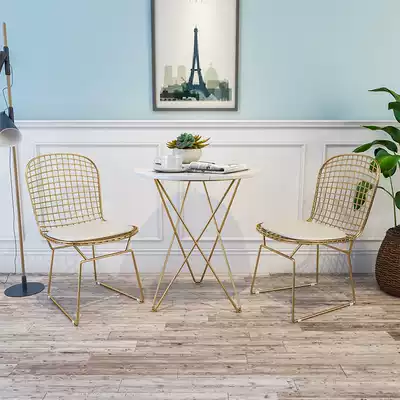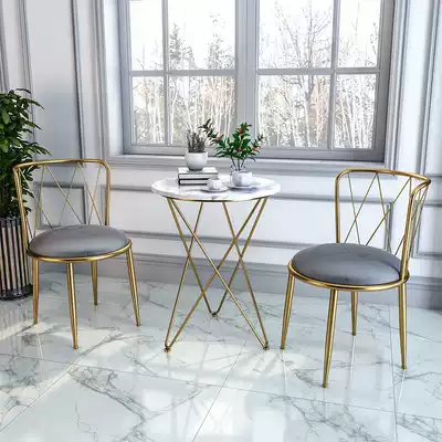 Nordic light luxury dining chair modern simple household iron leisure stool back chair ins Net red table and chair three-piece set