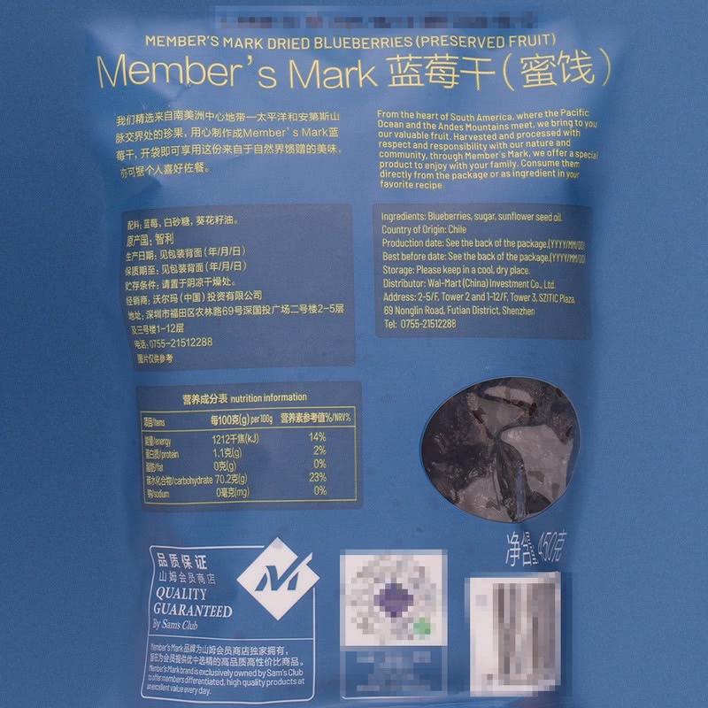 Sam Members Mark Chile imported dried blueberries 450g snack dried fruit