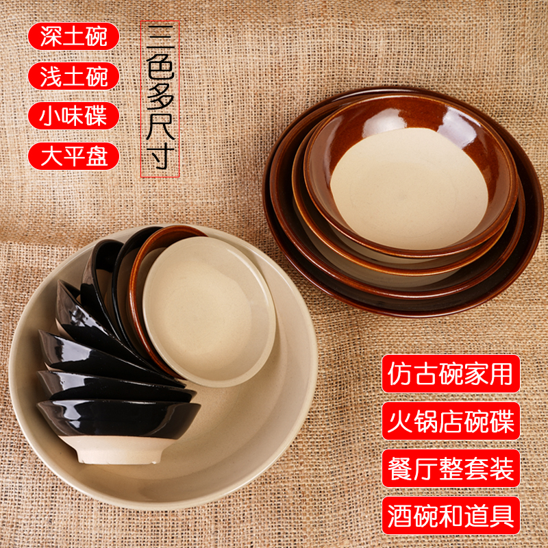 Antique bowl Tuba bowl hot pot bowl steamed buckle meat burning white bowl smashing wine bowl commercial household old-fashioned farmhouse ceramic plate