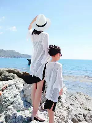 Female women's white sunscreen shirt parent-child lace top cardigan beach Beach seaside resort thin coat