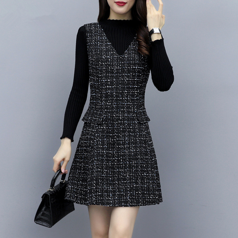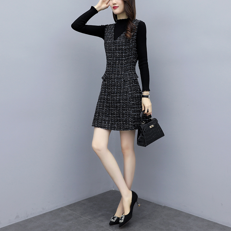 2023 autumn and winter new large size fat mm suspenders dress suit female waist slimming woolen vest skirt two-piece set