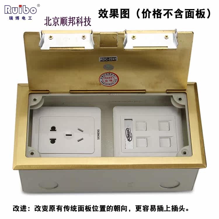 Reibo full copper open concealed ground socket with wire outlet hole with double 2-position 86-type panel ground socket