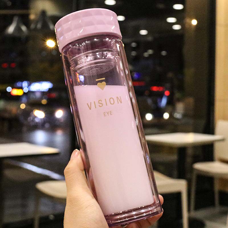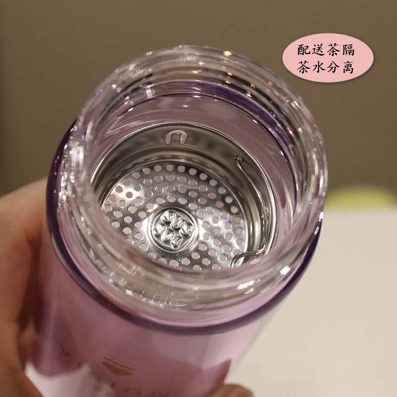 Korean version with small frescoed double glass cup filter flower tea cup anti-hot lemon cup cute trend with hand mug