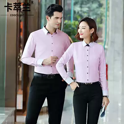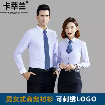 Temperament business shirt set high-end dress company tooling men and women same fashion white collar shirt custom logo