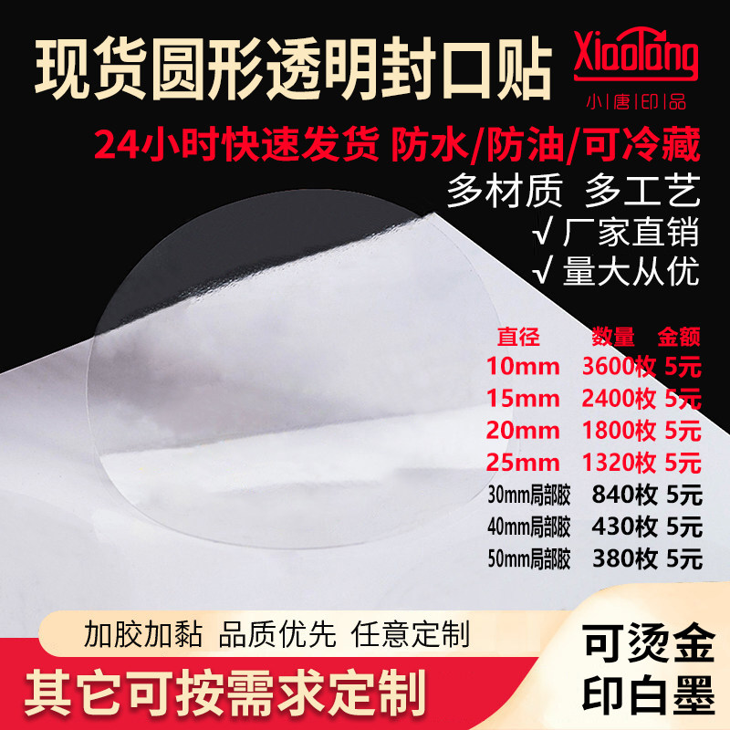 Spot easy to tear transparent round sealing sticker Local glue self-adhesive anti-counterfeiting sealing sticker Custom label printing