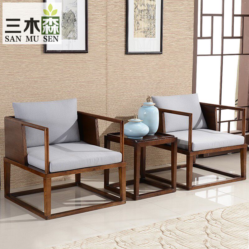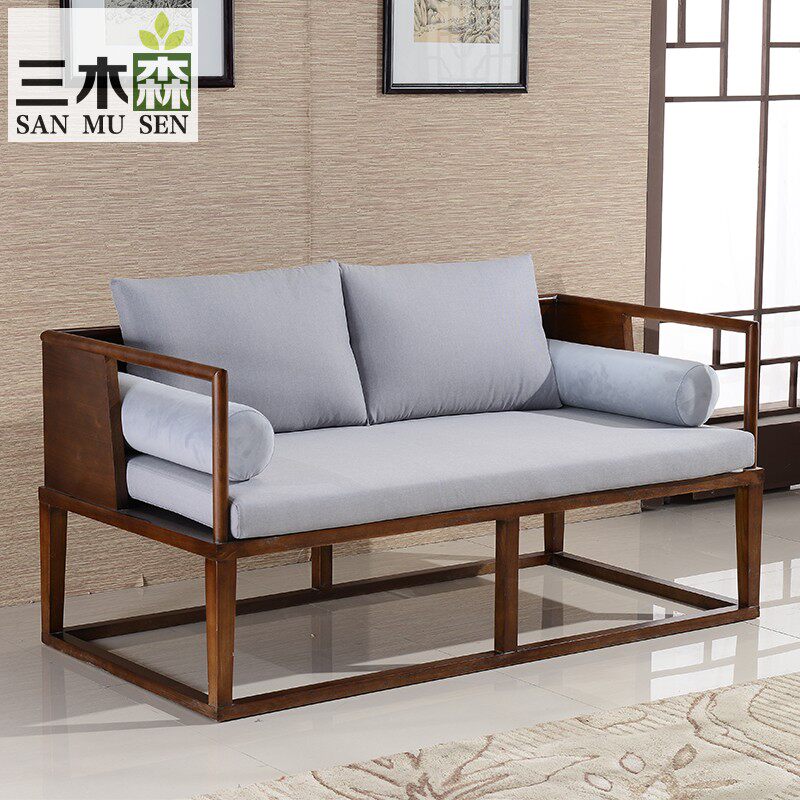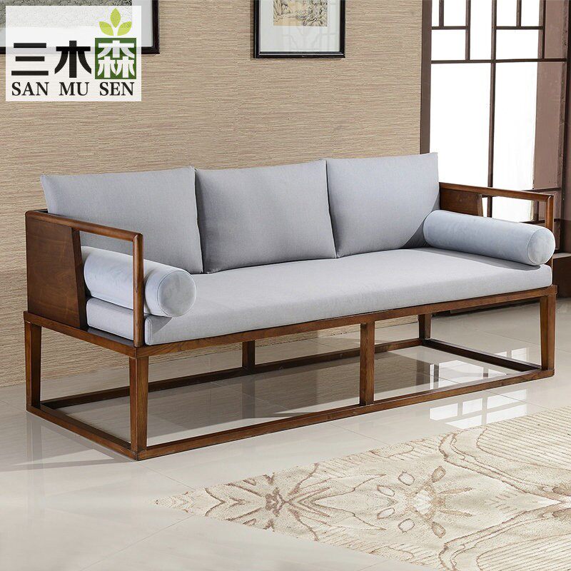 New Chinese Solid Wood Sofa Combination Zen Modern Chinese Fabric Sofa Simple Antique Villa Chinese Style Furniture