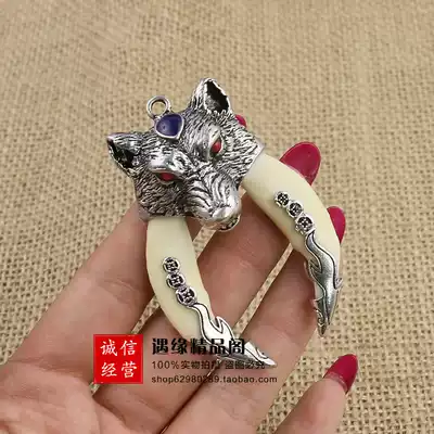 Tibetan silver alloy faucet set inlaid dog tooth pendant pendant pendant collar