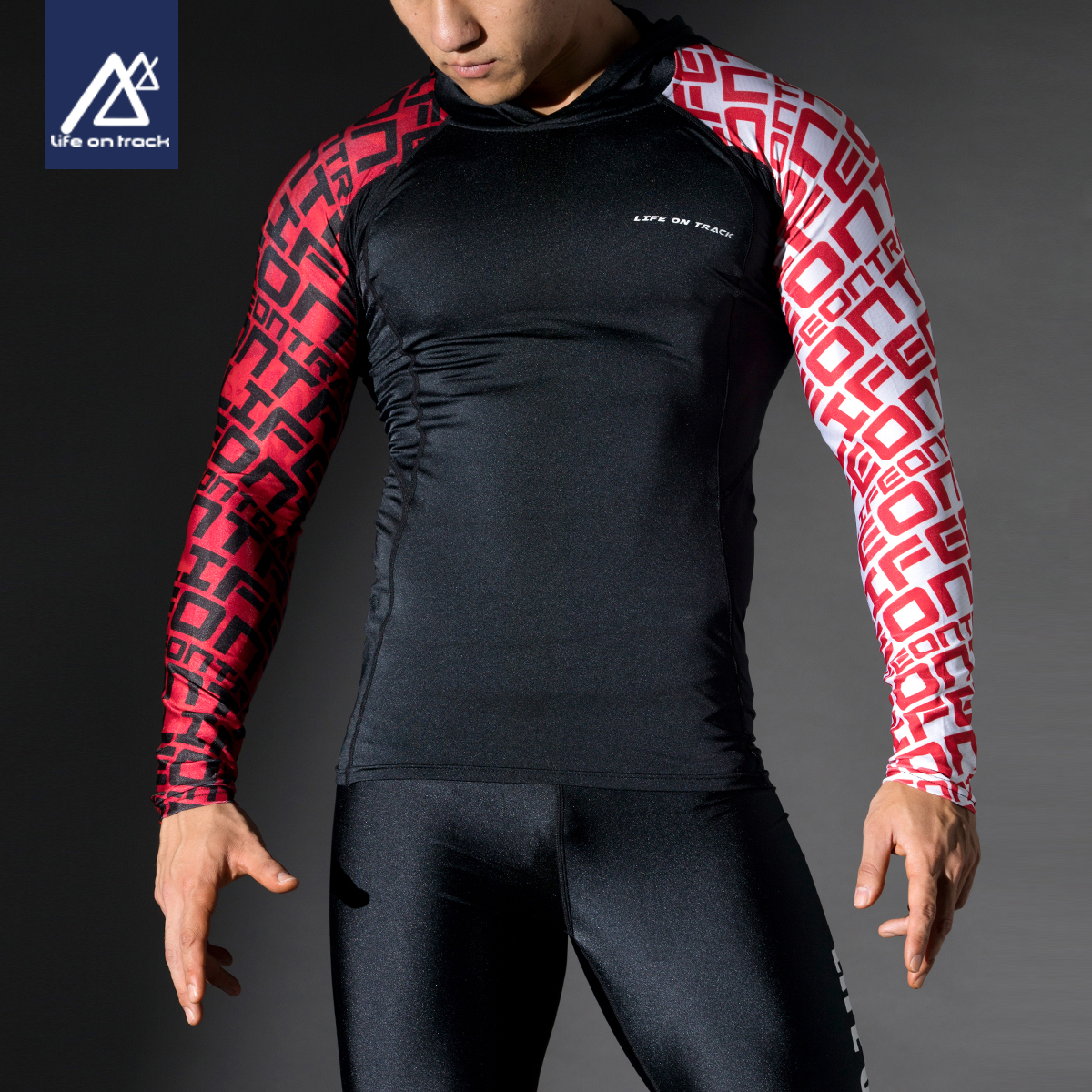 Quick-drying high-elastic fitness clothes men's long-sleeved printing stand-up collar sports jacket tight top gym running training clothes