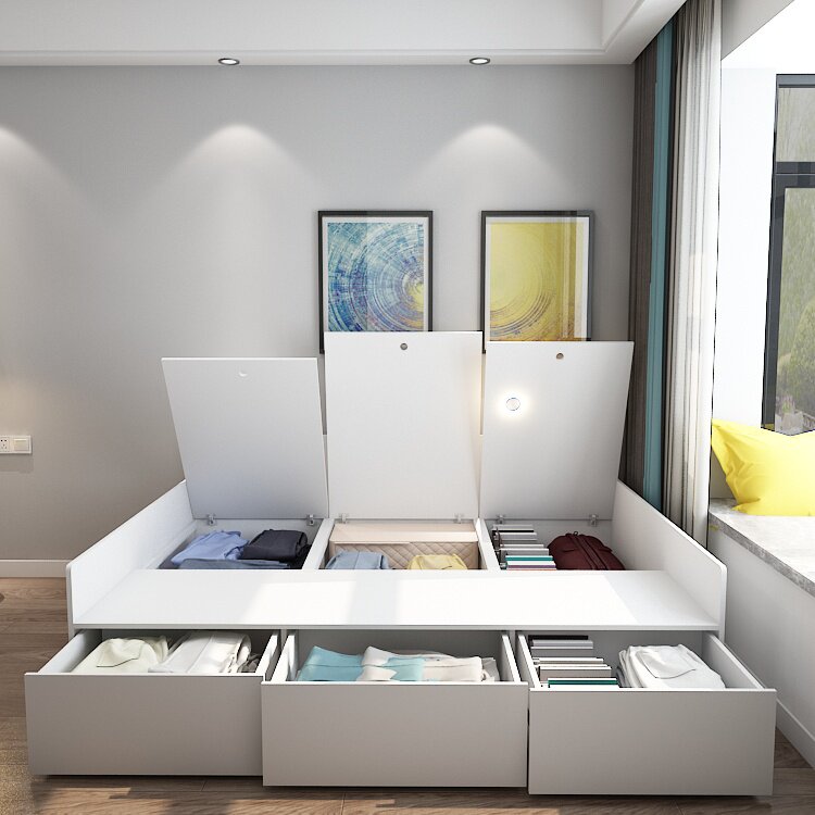 Modern minimalist study tatami bed storage board storage single bed small apartment drawer can be customized multi-functional