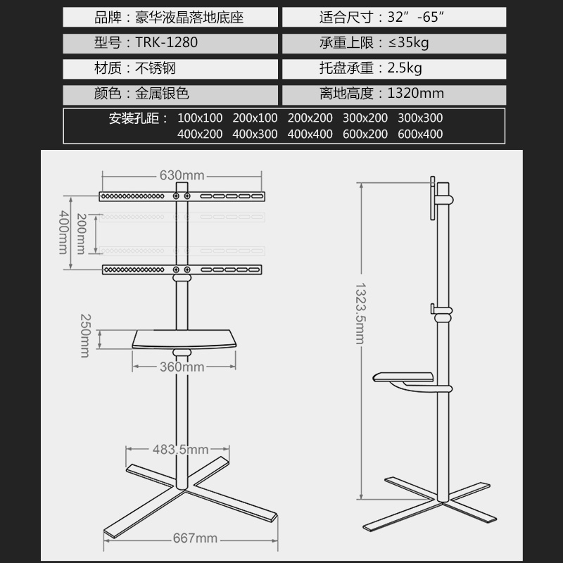 Stainless steel 32-65 inch TV base Landing Bracket Glory X1 Xiaomi Genesis TCL Philips MOBILE RACK