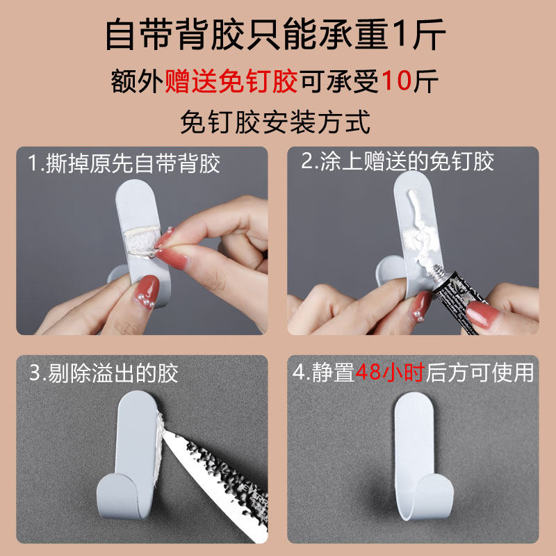Free Punch Door Rear Hook Powerful Sticky Hook Super Load Bearing Wall-mounted Attaching Hook Clothing Plug Mop Washbasin Adhesive