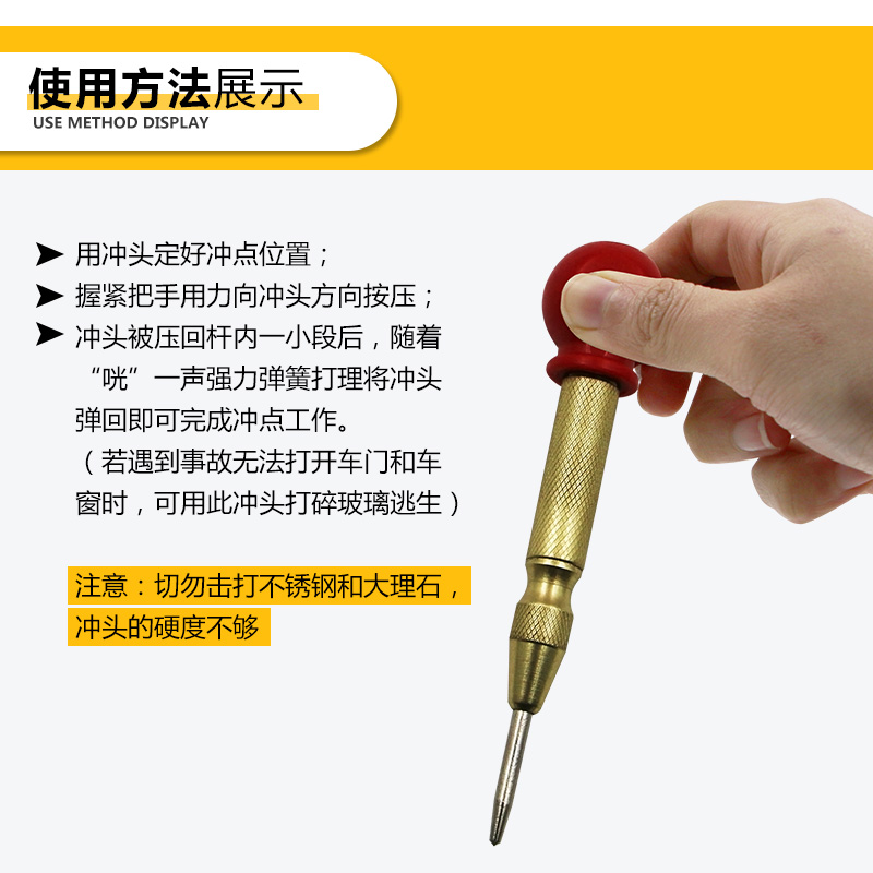 Automatic center punch Semi-automatic center punch Auto glass window breaker with grip-like punch positioner