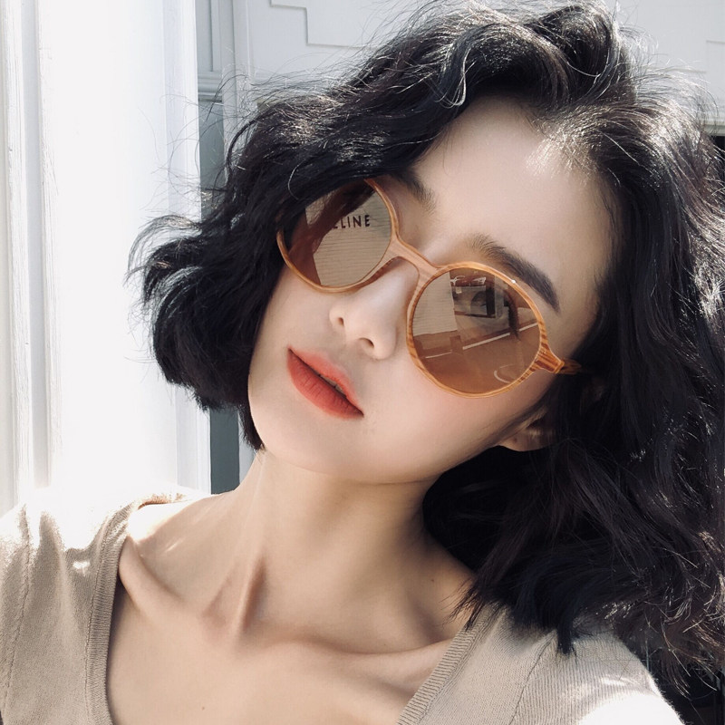 Net red in sunglasses 2021 new tide Han street to take personality sunglasses female round face port wind tea glasses