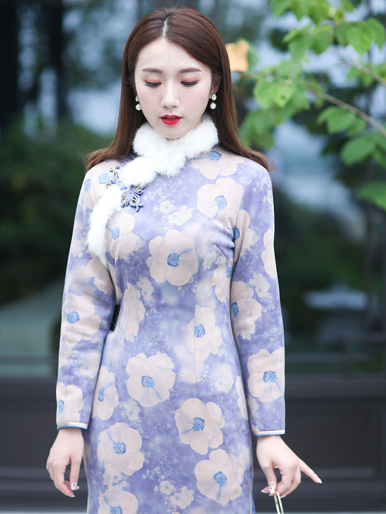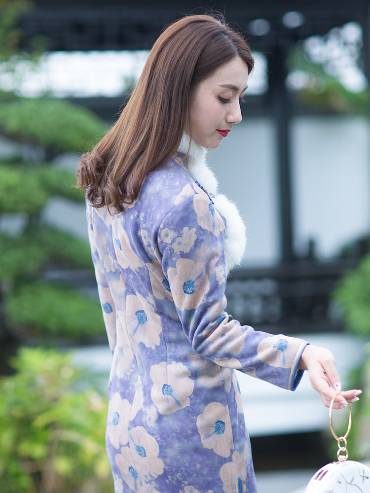 Qipao winter style thickened New Chinese New Year qipao Short cotton clothes clip cotton long version Mao collar method Improved young ethnic wind and women's clothing