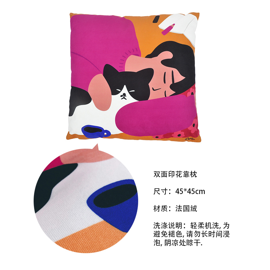 "Chirp's Meow" cat illustration flannel pillow pillow home fabric decoration Nordic ins gift gift