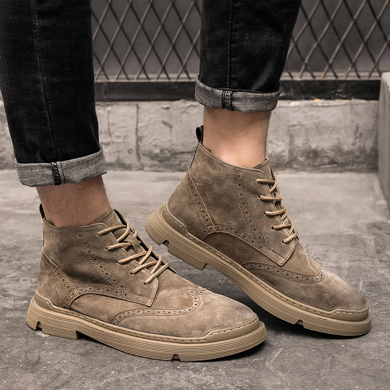 Martin Boot Men's Inn Wind Genuine Leather Retro Boots Summer Bullock High Cylinder Leather Shoes Turd Shoes Breathable Boomer Shoes