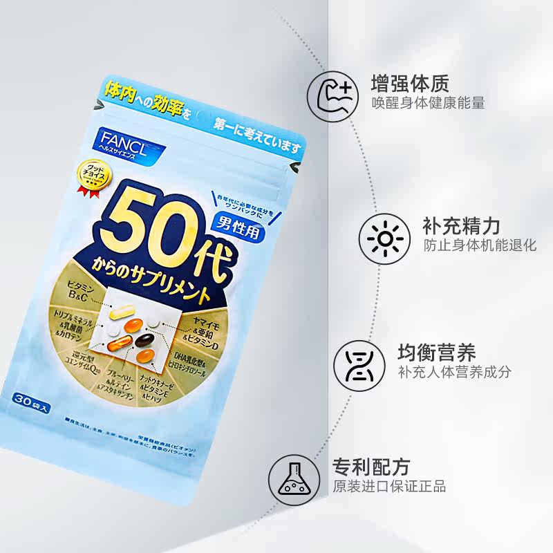 Japan FANCL Fang Ke male men's 50-year-old compound integrated vitamin minerals 1 pack of 2 times Flagship Store =