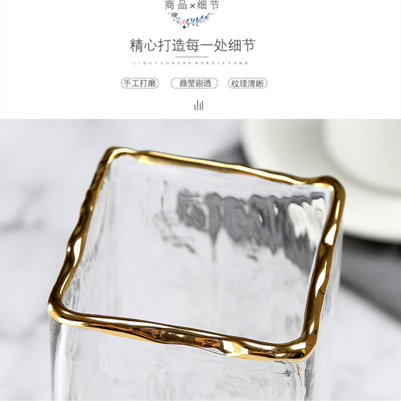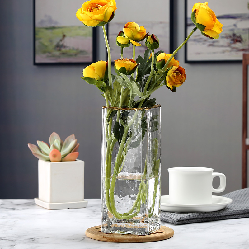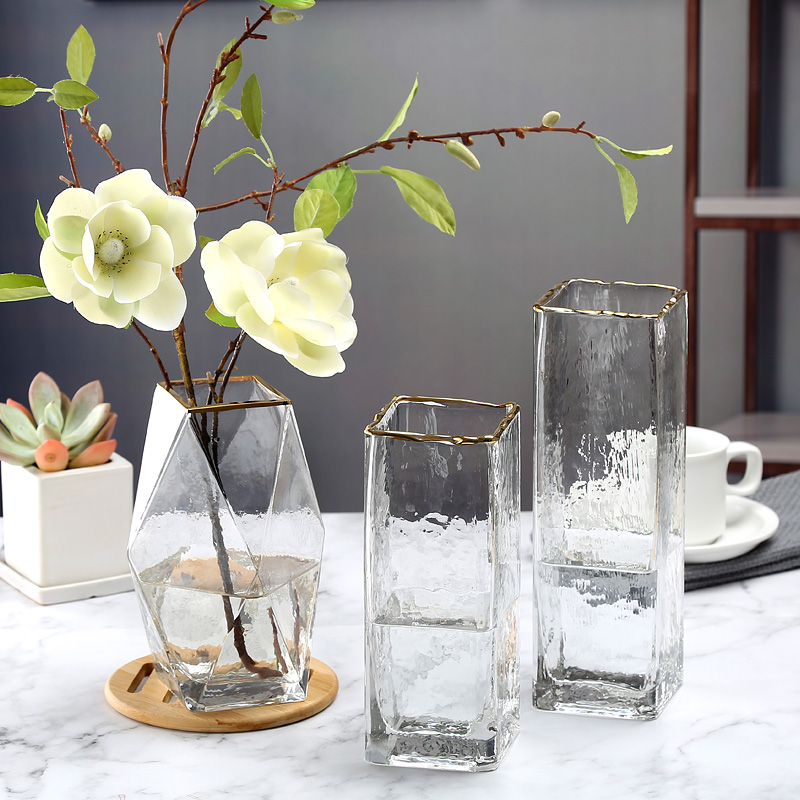 European-style light luxury cold pattern gold vase square flowers water culture rich bamboo ornaments living room glass creative transparent