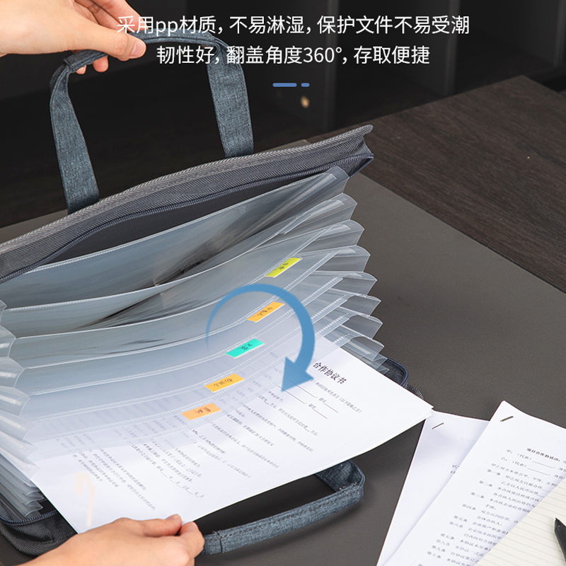 Deli cloth multi-card package A4 student multi-layer folder with data capacity Middle and high school paper clip Classification paper storage bag portable fabric paper package Office business information book notes