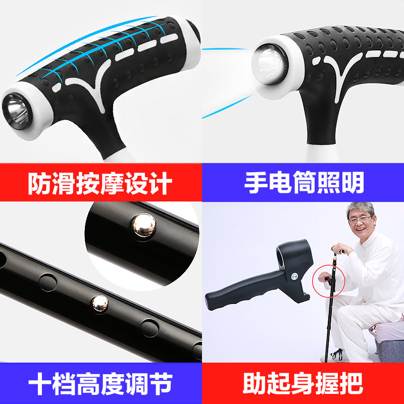 Old man's scepter four-legged walking stick with light non-slip anti-slip corner for older people with fractured three-legged walking stick with hand stick