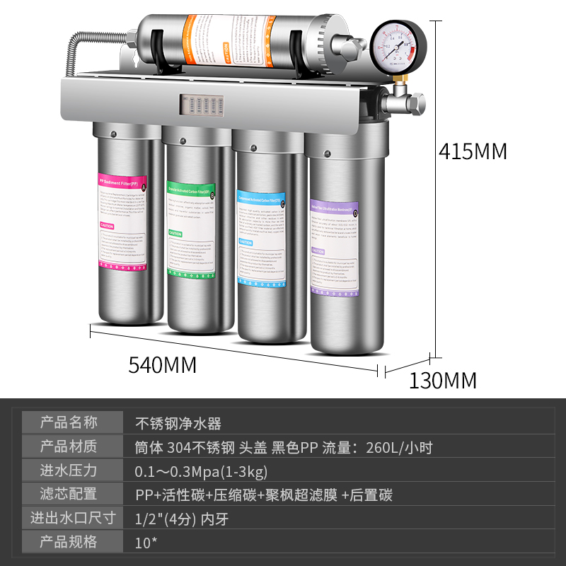 Hengzhi five-way ultrafiltration machine universal coconut shell activated carbon filter direct drinking water filter kitchen stainless steel water purifier