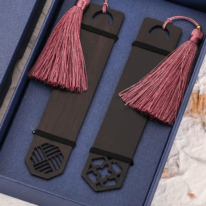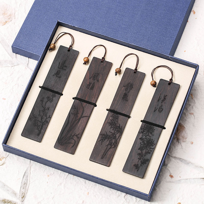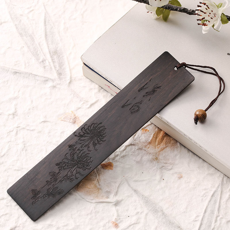 Exquisite vintage classic Chinese style mahogany hollow bookmark handmade literature and art students with small fresh ebony wood lotus leaf veins Ancient style Birthday gift small souvenir Creative custom lettering