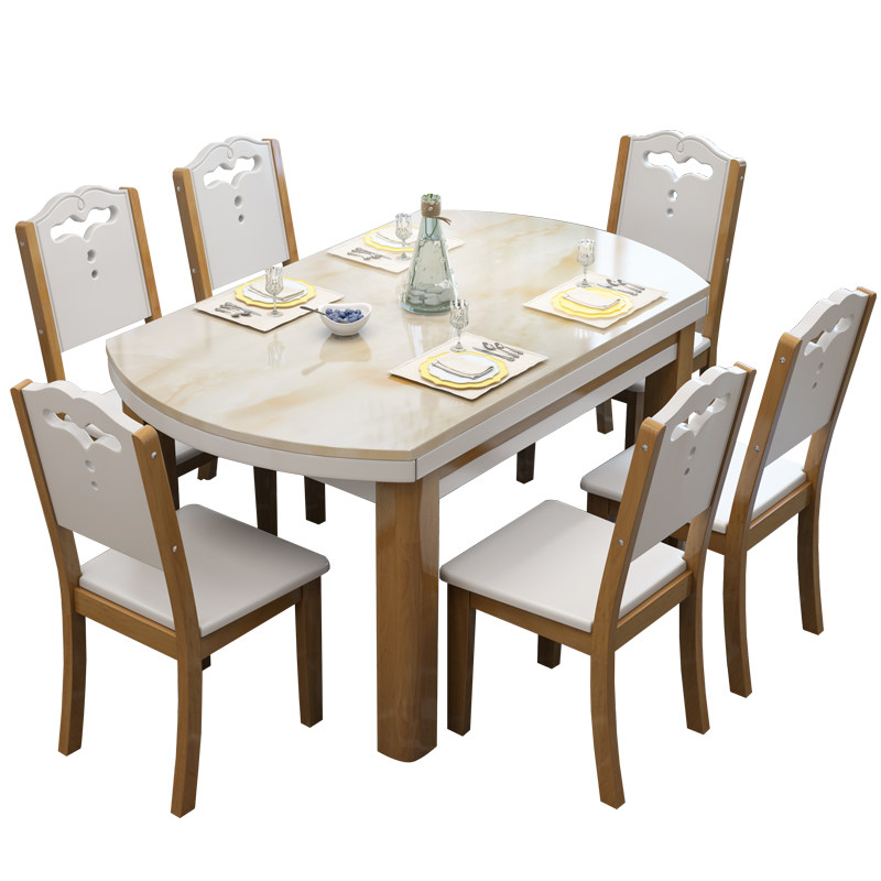 Marble dining table and chair combination Modern simple telescopic folding solid wood household small household variable round table rectangular