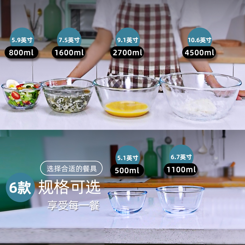 Transparent and heat-resistant glass bowls microwave oven special high temperature home eating rice bowls anti-explosion beaten egg big number and face basin