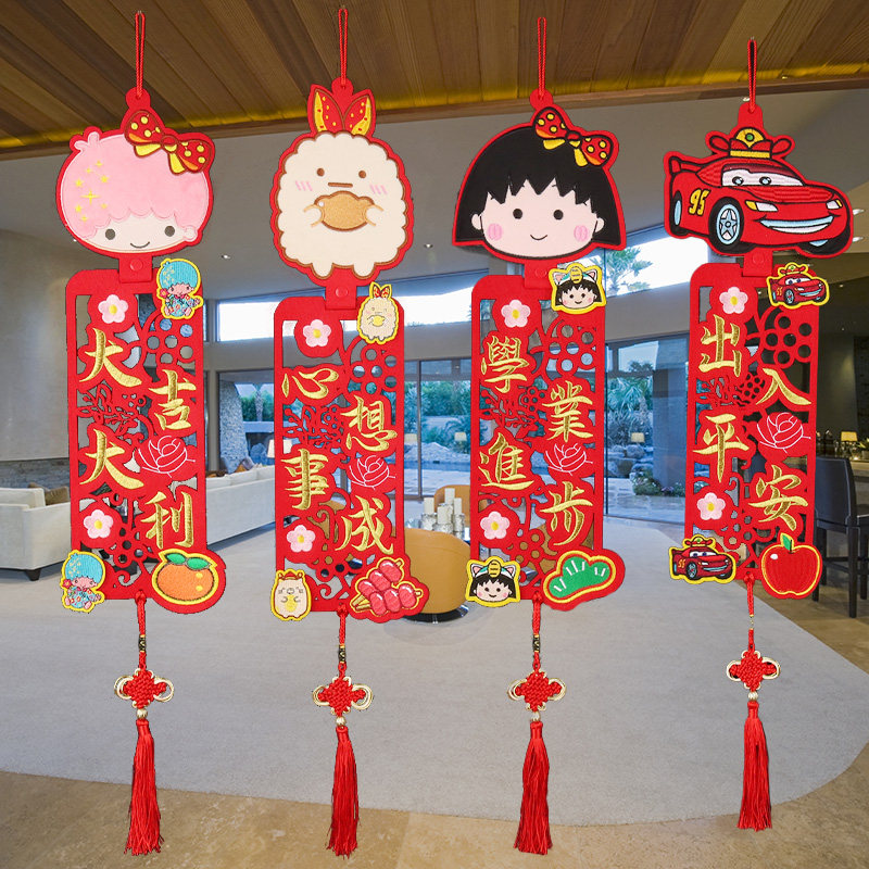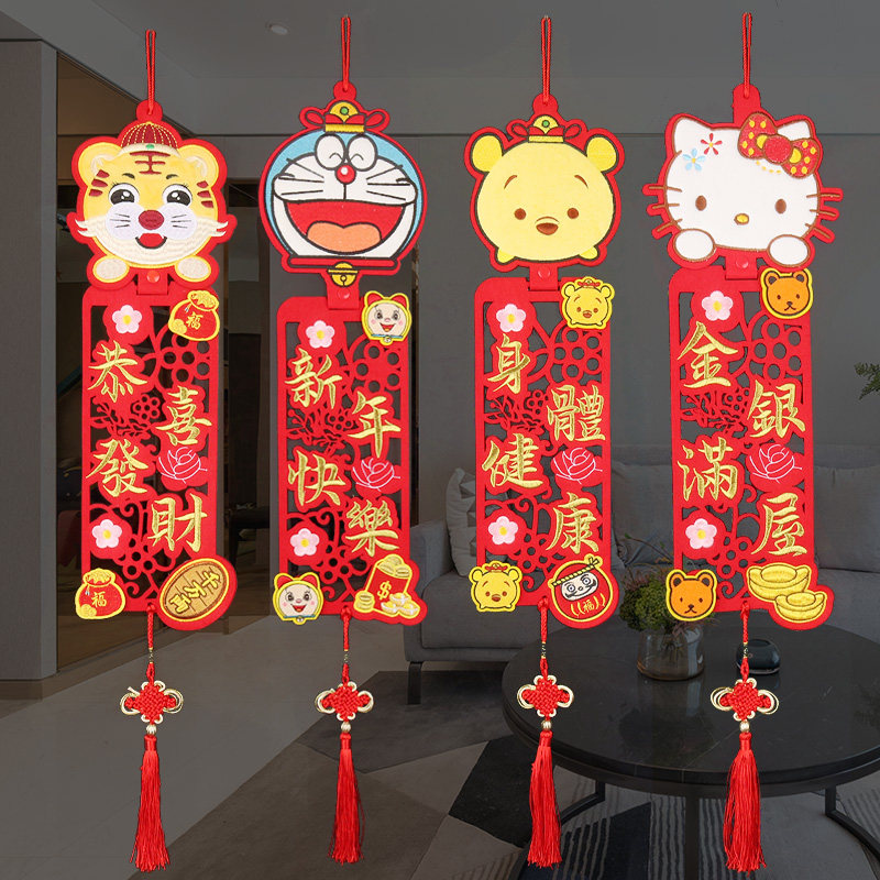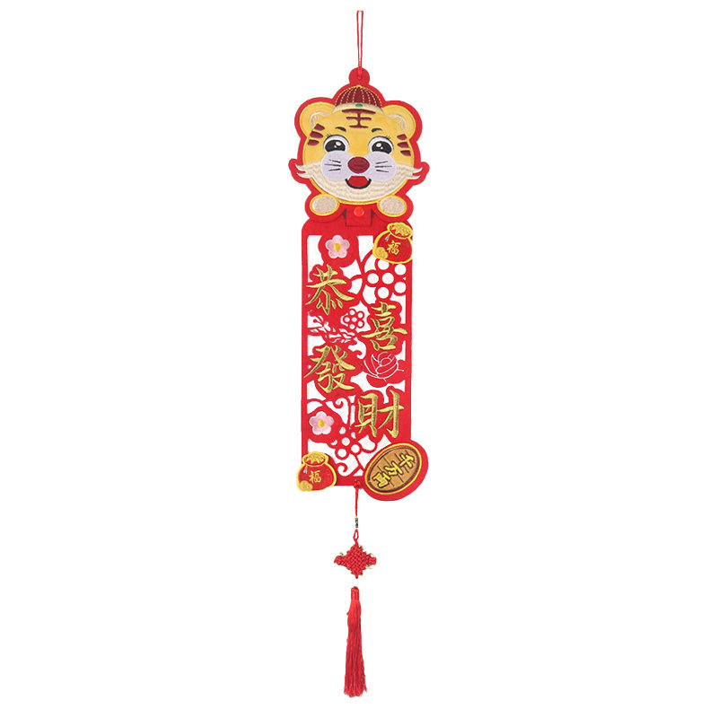 2022 New Year's Spring Festival pendant three-dimensional cartoon four-character doll ornaments Year of the Tiger embroidery Spring Festival couplets Hunchun indoor