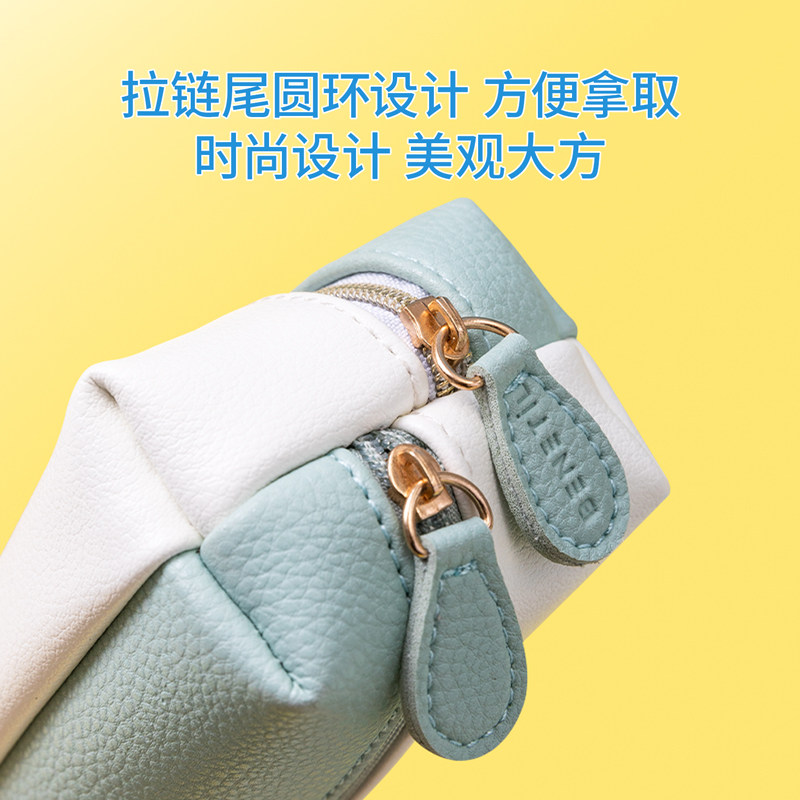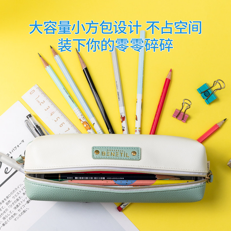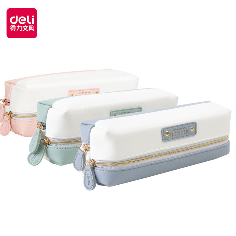Deli pen bag Morandi color double large capacity female simple primary school PU multi-purpose kindergarten Cute junior high school college students High color value transparent examination students