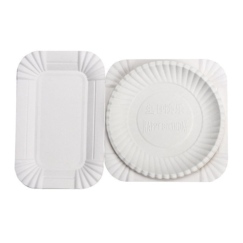 Disposable Paper Pan Zi Thickened Square Pulp Dish Round Paper Dish Rectangular Paper Tray Cake Plastic Dinner Plate