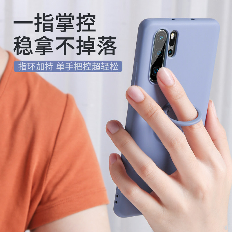 Applicable Huawei p30pro liquid silicone phone protective shell ring buckle bracket Huawei P40pro all-bag protection ultra-thin soft-tide men's net red woman new p30por personality creative hanging
