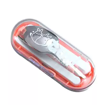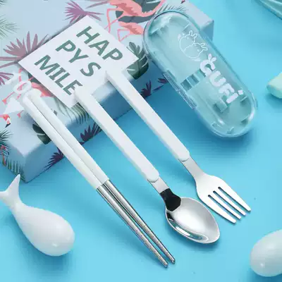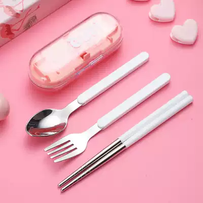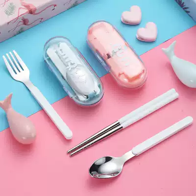 Cartoon cute portable tableware chopsticks spoon set single student stainless steel fork storage box three-piece set