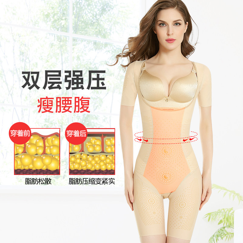 Negative ion health one-piece body sculpting short-sleeved caffeine ultra-thin postpartum abdominal waist waist body sculpting underwear women
