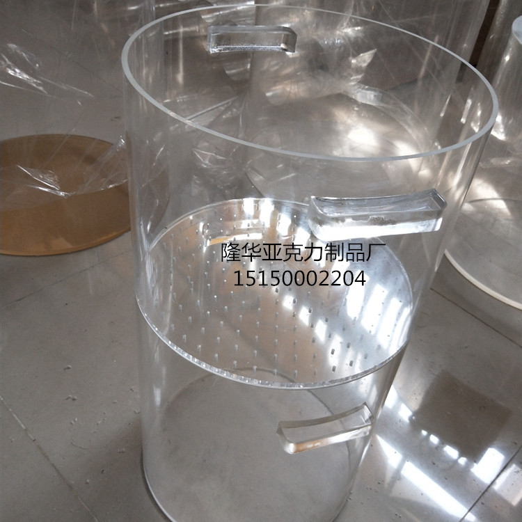 Custom acrylic cylindrical base with universal wheel bucket organic glass with water treatment container with wheels