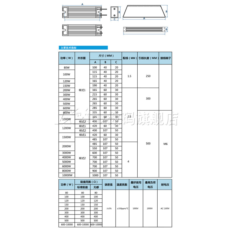 80W (remark resistance value) 100W (remark resistance value) 120W (remark resistance value) 150W (remark resistance value) 200W (remark resistance value) 300W (