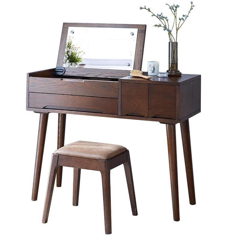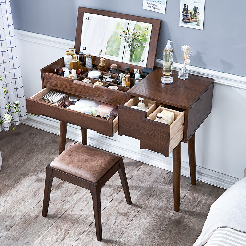 Home Comfort Solid Wood Makeup Table Oak Nordic Nordic Makeup Desk Bedroom Small Family Modern Minimalist Flip Flop Dressing Table