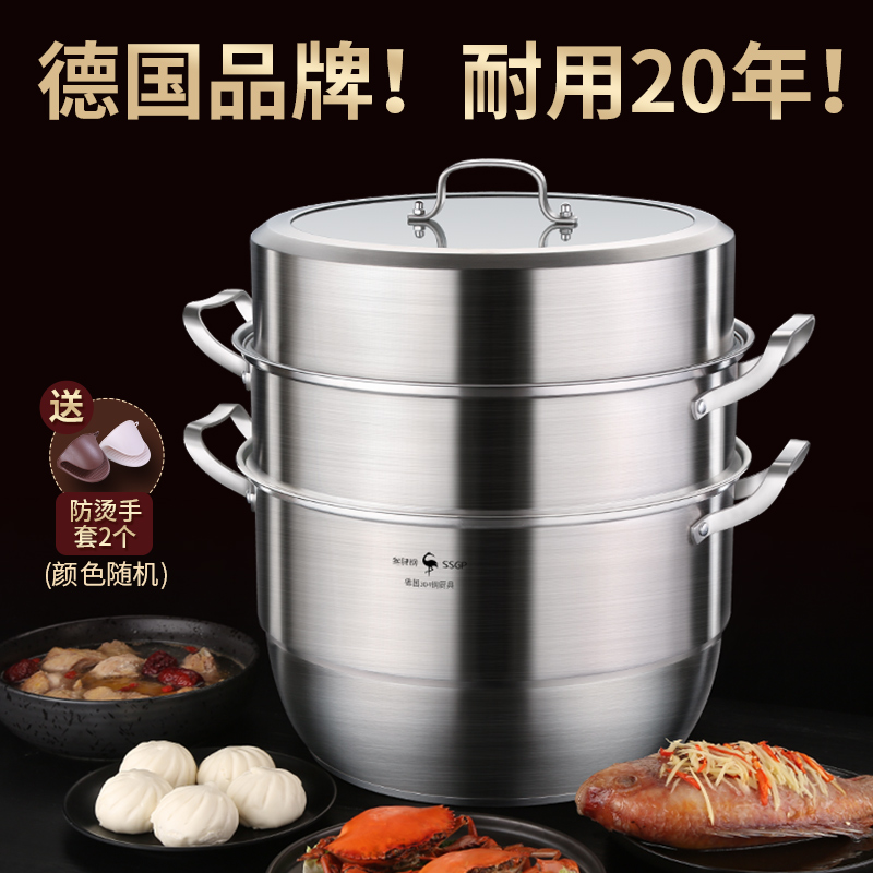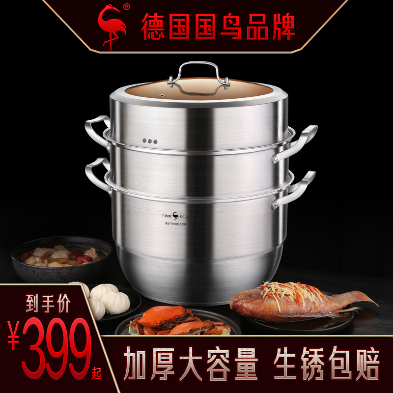 German steamer 304 stainless steel thickened steamed bun buns household large capacity large double-layer three-layer cooking steamer