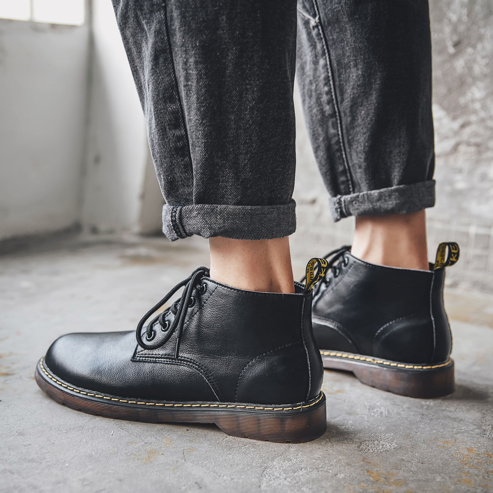 Martin boots men's tall British style spring and autumn black all-match Korean motorcycle boots mid-tube tooling short boots men's fashion - Taobao