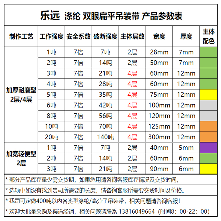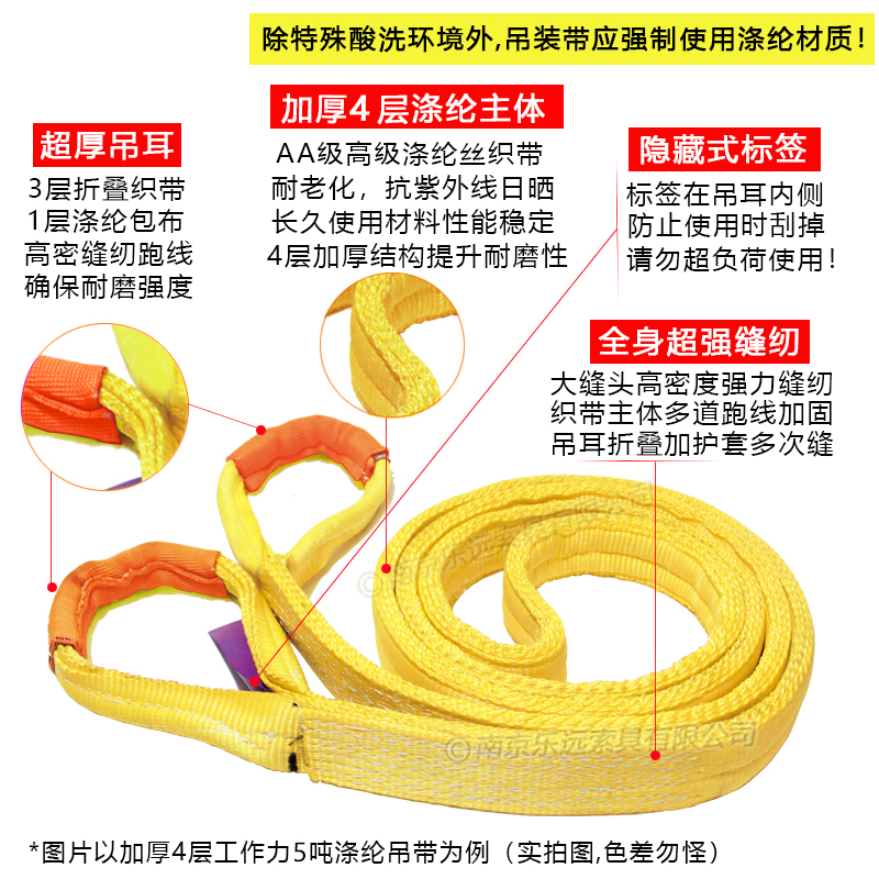Polyester fiber thickened abrasion resistant flat double Pendant Strap with 4 layers Color national Label Lifting flexible Belt 1 2 3 5 10 ton