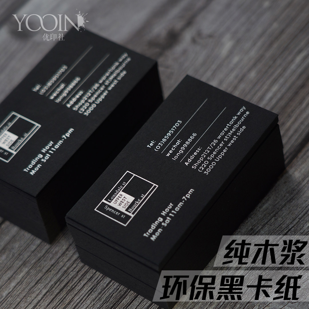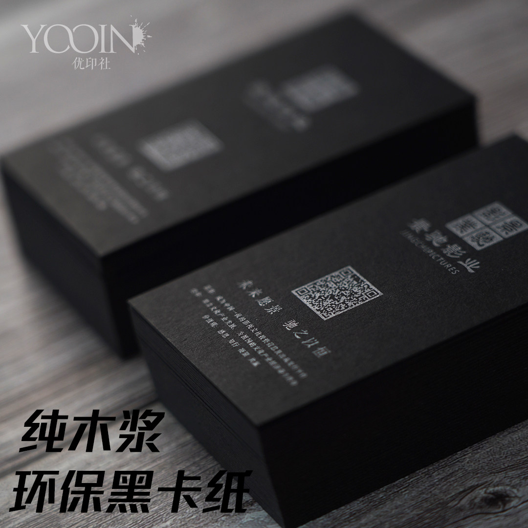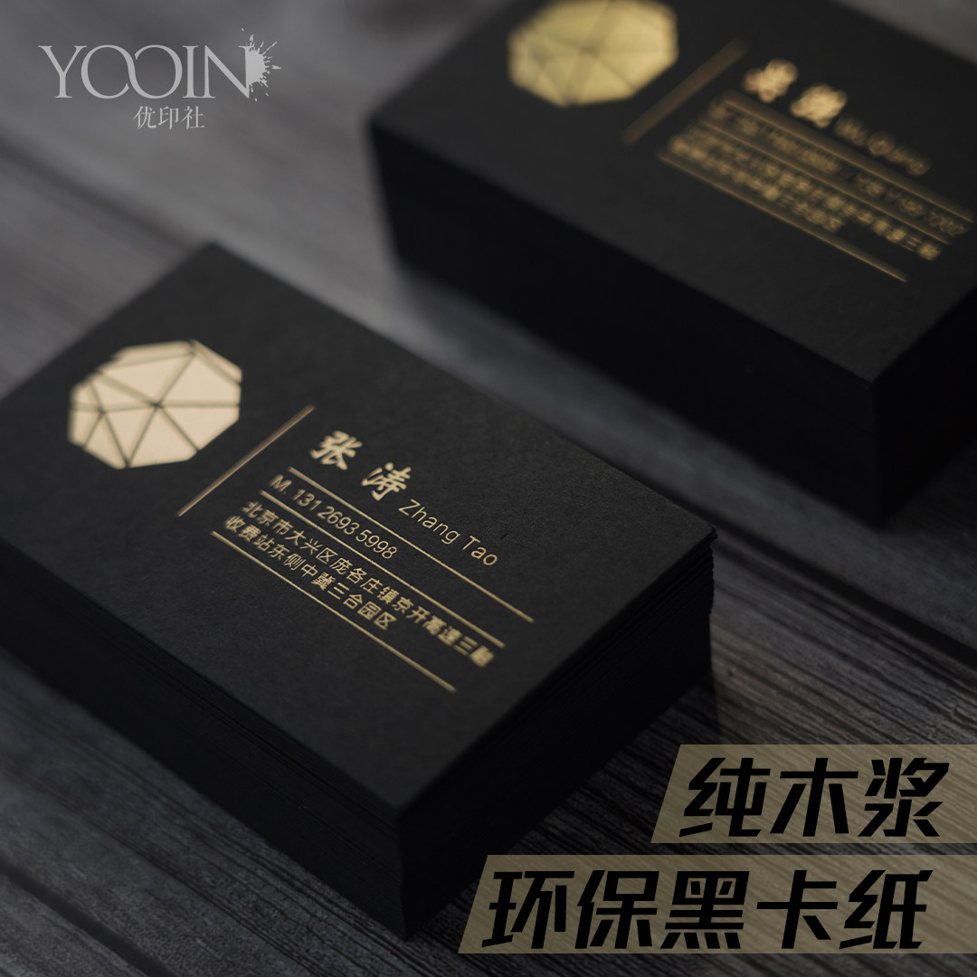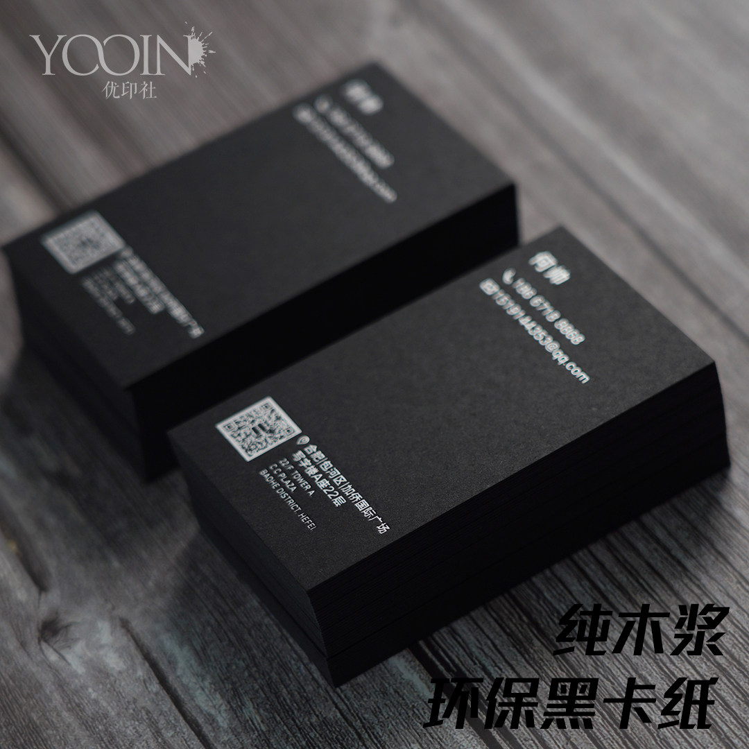 Print business card Black business card printing Creative high-end high-end thick black jam special paper Hot stamping hot silver free design typesetting company Personal personality Youyin Society