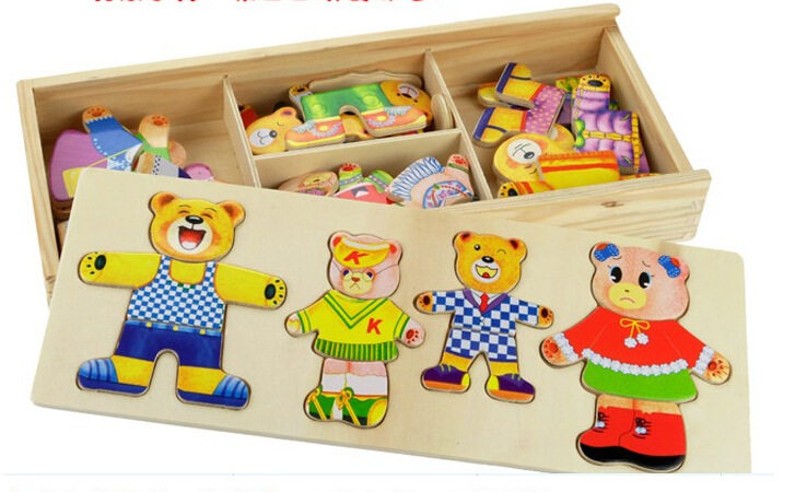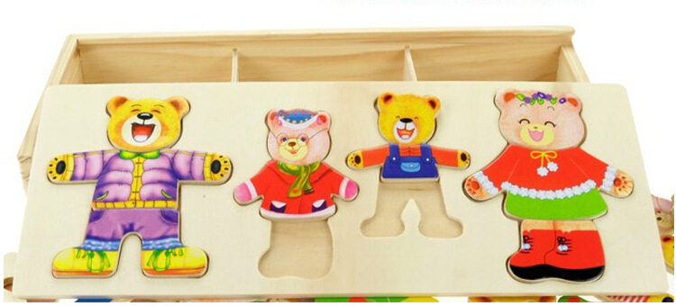Four Little Bear Change Clothes Game Wooden Children Early Education Enlightenment Hand Grip Wearing Clothes Pairing Jigsaw Puzzle Jigsaw Puzzle Jigsaw