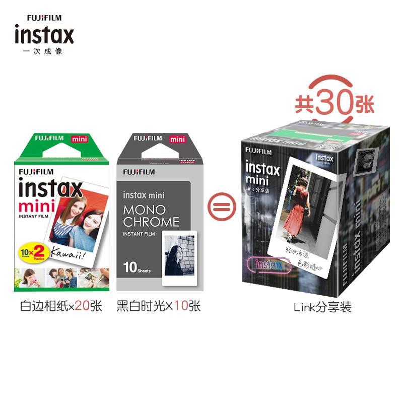 Fuji instax mini-phase paper clapping with paper 3 inch white edge black and white phase paper 30 Zhang link share dress
