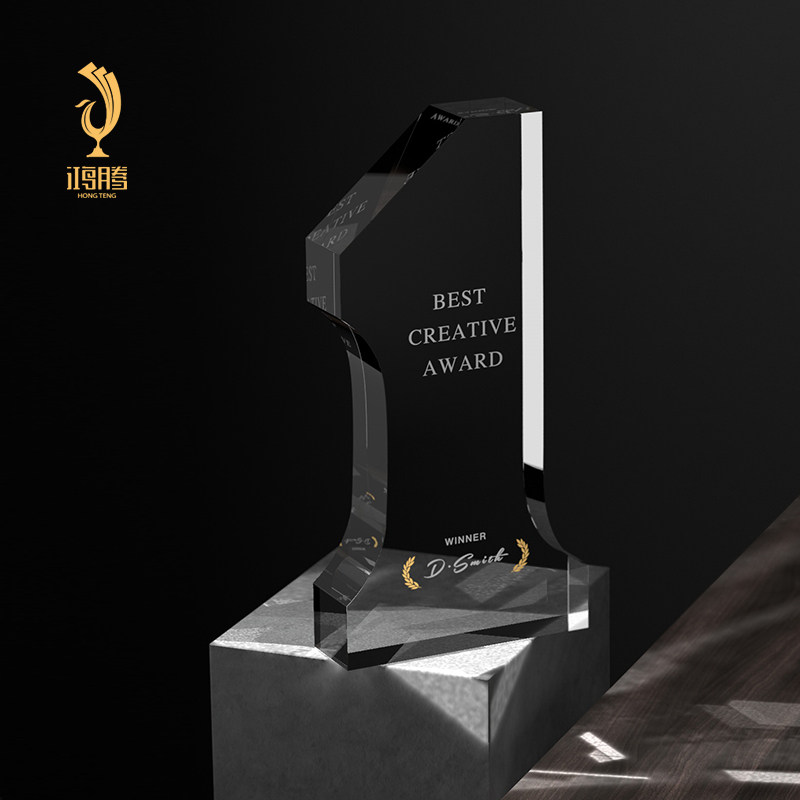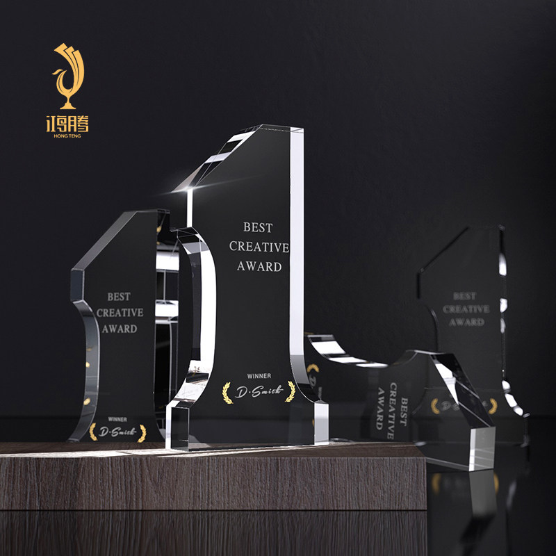 Crystal trophy set to do medal making number 1 first place anniversary souvenir excellent employee engraving