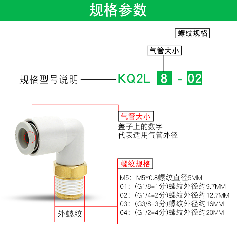 KQ2L-04-M5 inserts 4mm trachea M5 thread KQ2L-04-01 inserts 4mm trachea 1 minute thread KQ2L-04-02 plug 4mm gas
