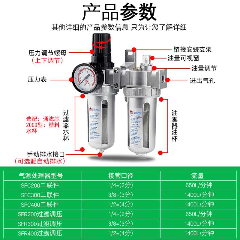 Processor Gas Source Processor SFR400 SFC200 Two-link Pressure Valve filter Oil-water separator