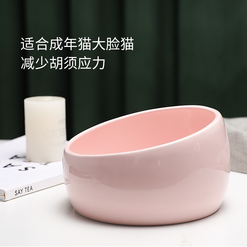 Ceramic Large Face Cat Bowl Gaffi Cat Popo Bowl Anti-Slip Large Capacity Water Bowl Glazed Face Pet Food Basin Anti-Roll 1L